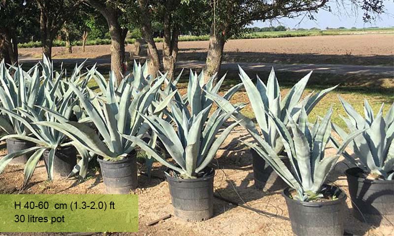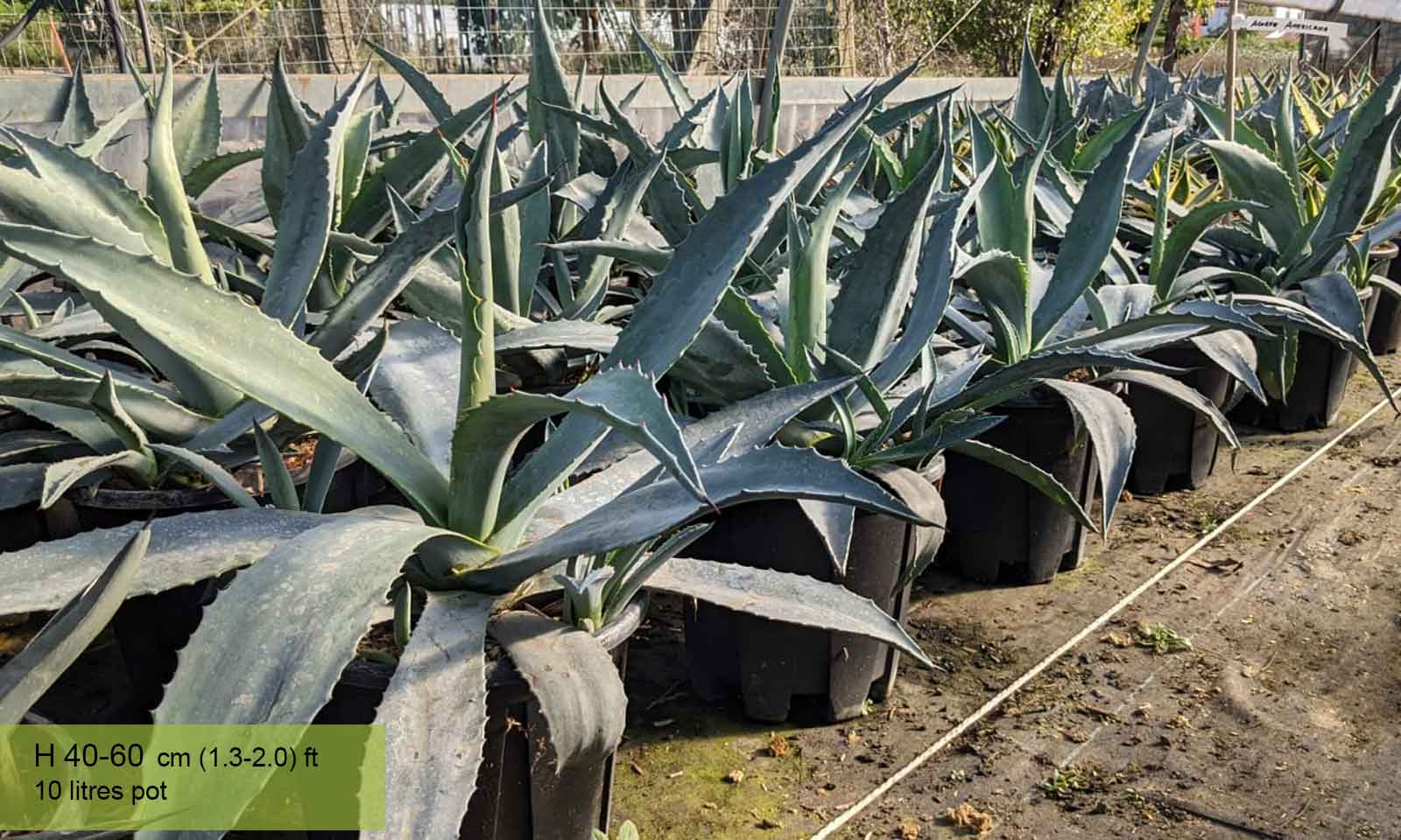 Commonly known as the Century Plant or American Aloe. Specimens even survive in pots or in the ground in the wet winters of the south coast of England. At the other extreme it may be seen planted out in southern Arizona and Texas. They are usually cultivated outdoors in rock gardens as well as cactus and succulent gardens. They are often used in Mediterranean-style landscapes, in borders, or as a specimen plant. They require full sun and a very well-drained, slightly acidic, sandy or gravely soil. As an ornamental it is also grown in containers where it stays much smaller than its outdoor brethren. The Agave Americana grows fairly fast in summer if provided with copious water but allow thorough drying before watering again. During the winter months, one should only water enough to keep the leaves from shrivelling. They do well in full sun or a lightly shaded area.