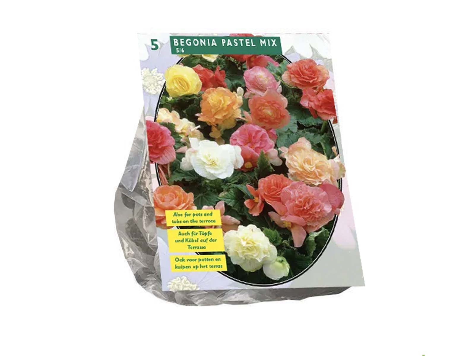 Begonia Pastel Mix is a delightful selection of free-flowering begonias in soft, romantic shades of pink, peach, yellow, and white. With their large, ruffled blooms and lush green foliage, these begonias add elegance and charm to borders, beds, and containers. Their long-lasting flowers provide continuous color throughout the season, making them a perfect choice for brightening shady areas.