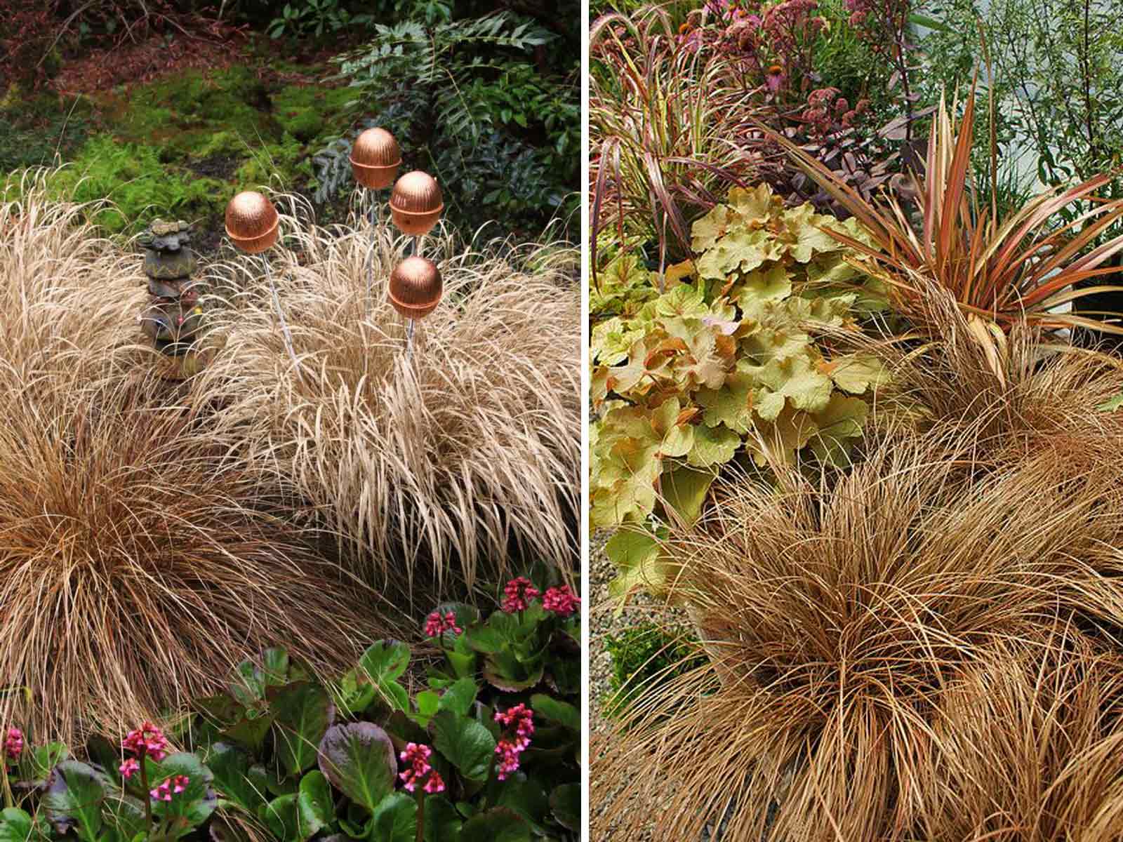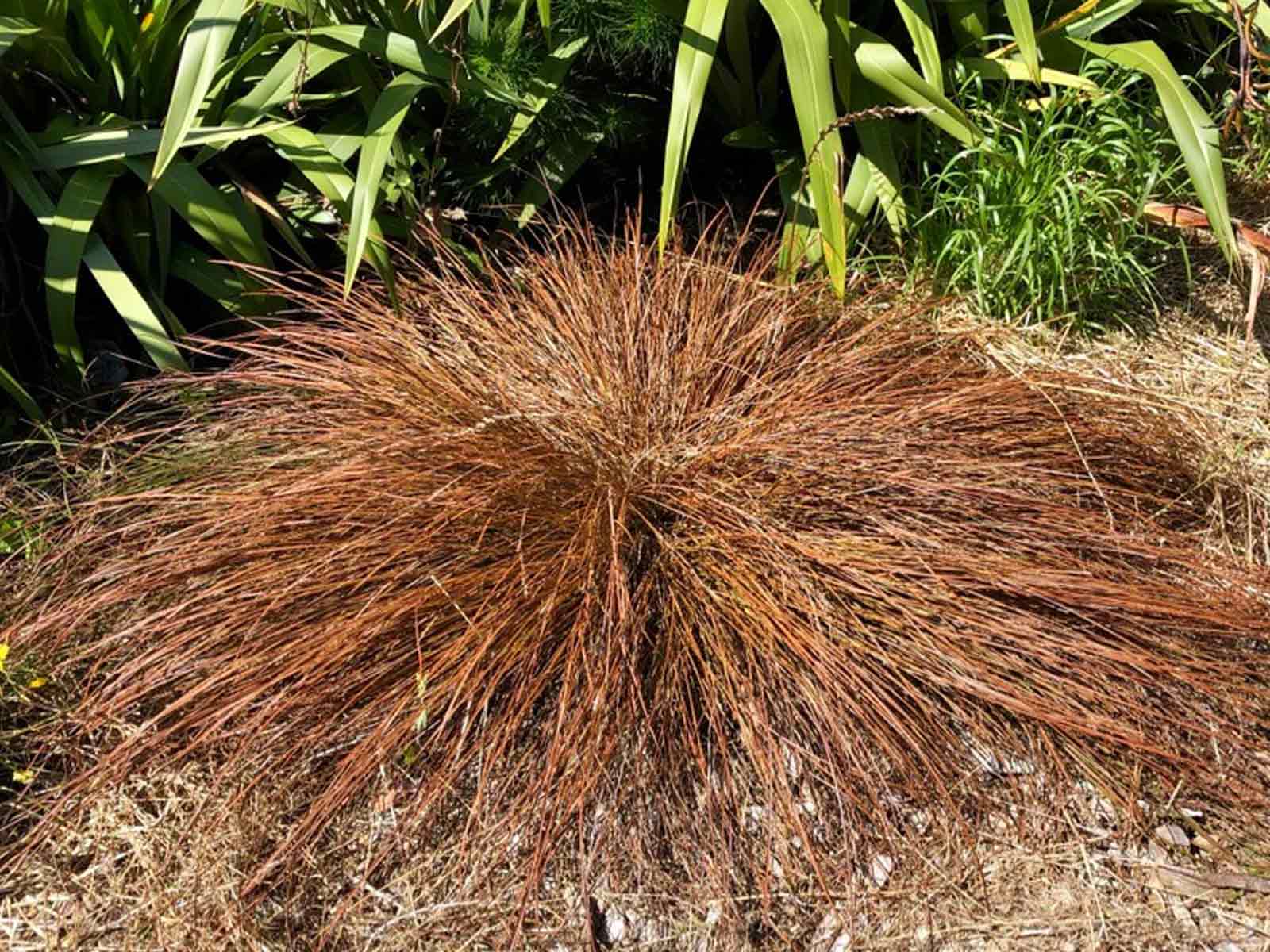 The Cappuccino Sedge provides a fountain of colour and interest all-year-round. It’s thin straw-like leaves start out green as they appear in spring, before turning a reddish brown in summer and then paling to tan in the winter. Brown flowers also appear in late summer, but they are hard to spot against the similarly coloured leaves.
