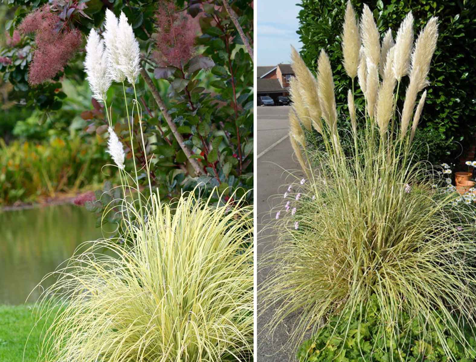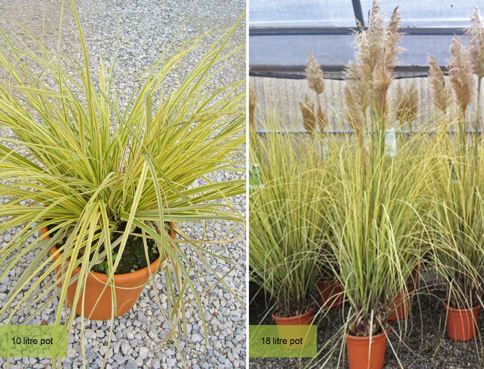 Please note, we can not guarantee flowers on Pampas Grass on the day of delivery. Usually Pampas Grass start flowering when its more established in the garden. While some plants might be in flowers on delivery date, we can not guarantee that for every delivery. It might take one or two extra seasons even if you order plants in 18 litre containers.