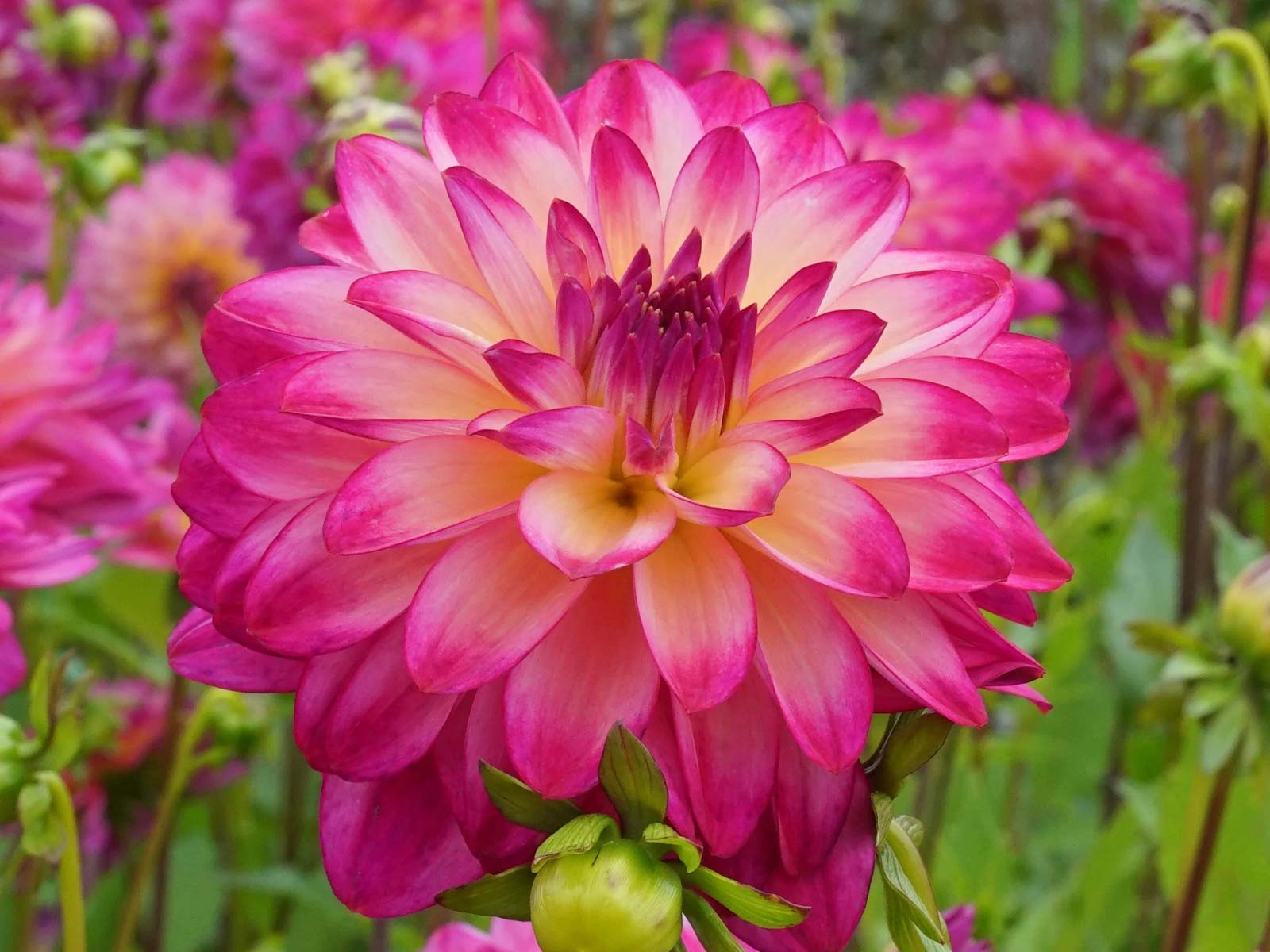 Reaching 80cm (32″) in height and 50cm (20″) in spread, it thrives in sunny, well-draining spots. In colder climates, protect tubers over winter by lifting or mulching. Expect a continuous display of charming blooms from mid-summer to autumn!