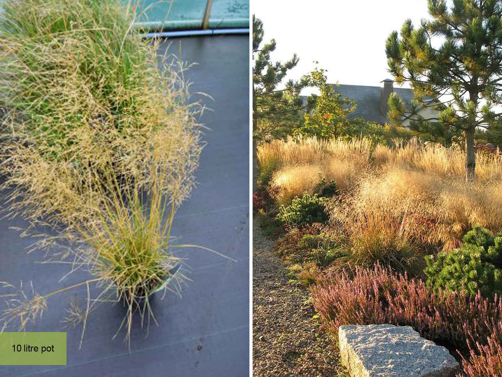 Tufted Hair Grass Goldtau is delicate in appearance – with thin green stems reaching upwards from the central core at its base. It’s fine flowery plumage also changes colour as it ages – from silvery green in summer to pale gold by the end of autumn. Delicate in appearance, but resilient against the cold and wet British weather, Tufted Hair Grass Goldtau is popular in Cottage or Farmhouse style gardens.