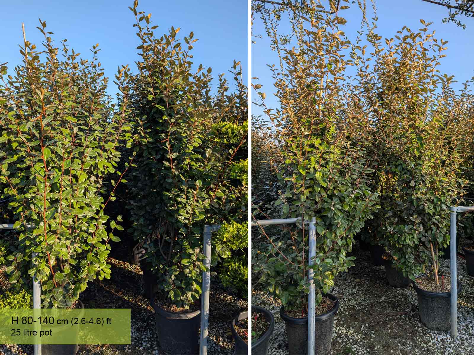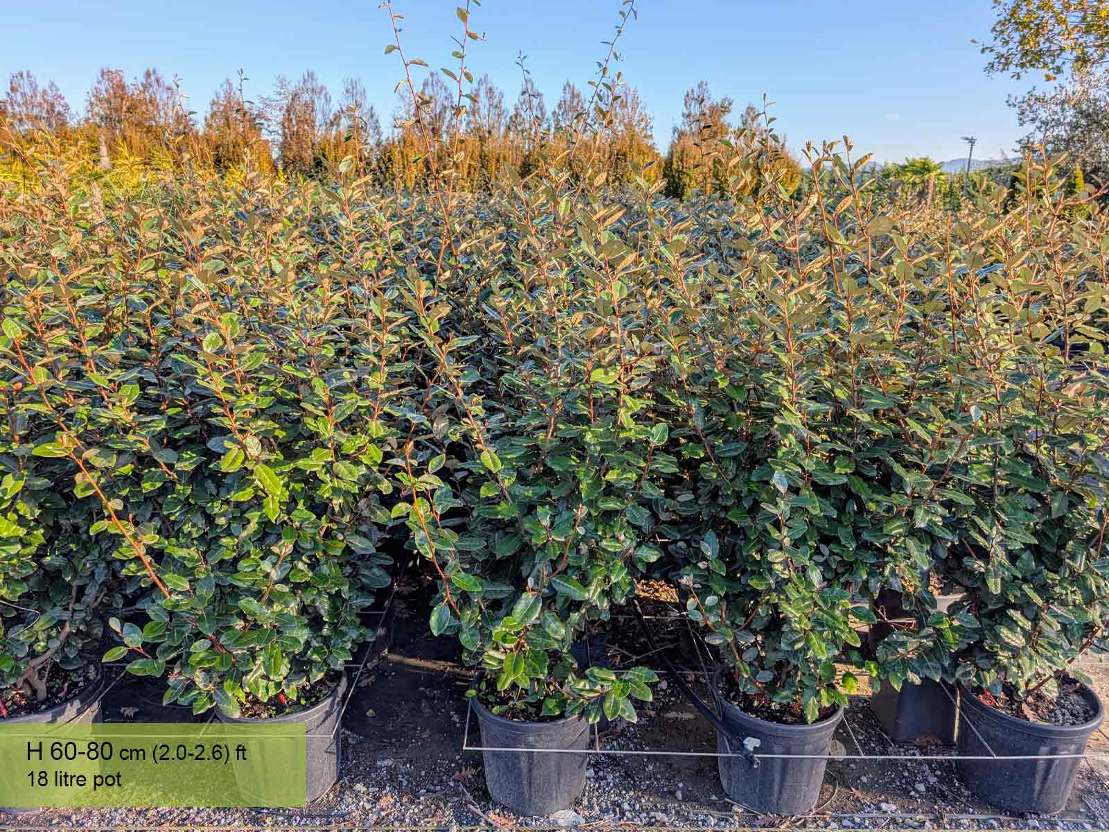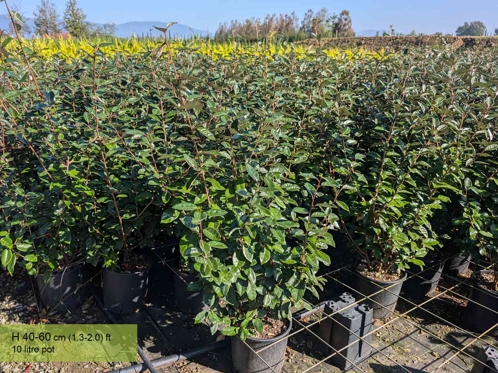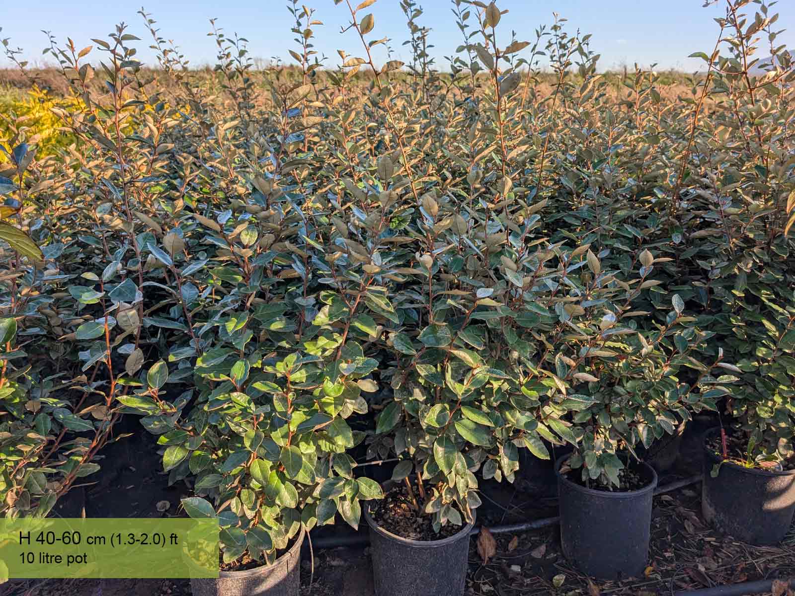 The Elaeagnus x Ebbingei is a plant that is an evergreen shrub. The history of the plant is that it is a hybrid first discovered by Dutch horticulturalist, Simon Doorenbos, in 1929. He sowed the seed from several Elaeagnus species growing next to each other, thus giving birth to this plant. This variant is a Standard Espalier Plant. The plant starts to flower in Autumn producing lovely white flowers and by winter time produces several small orange fruits. It has a H5 rating in terms of hardiness and is therefore great for the British climate although it is advised to shelter them during extreme cold snaps, especially in Scotland. The soil needs to be well drained with some moisture permitted. The plant itself is generally free of pests but be wary of the elaeagnus sucker which could be problematic for this plant. Also be on the lookout for potential diseases. Make sure to prune this plant following the guidelines of pruning group 9. The plant itself can grow to a height between 1.8 m – 2 m (5.9 ft – 6.6 ft) and sideways spread between 90 cm – 1.5 m (2.9 ft – 4.9 ft).