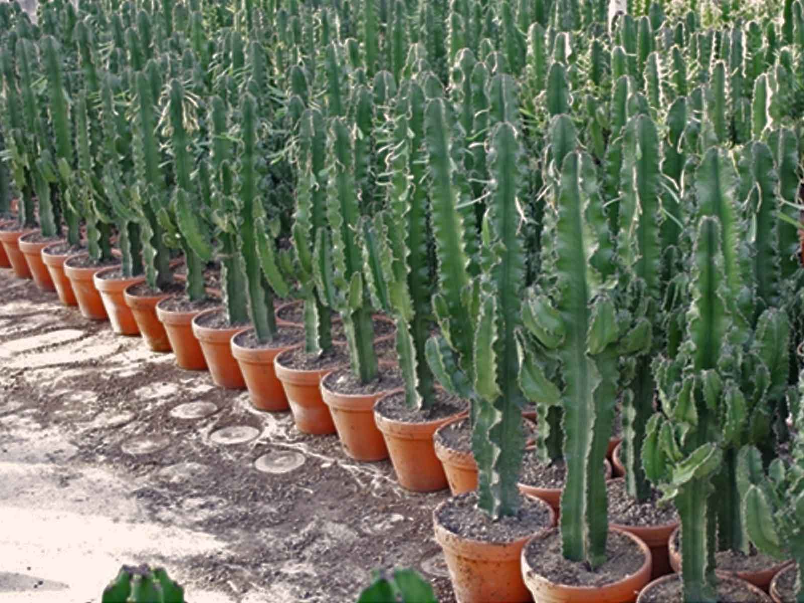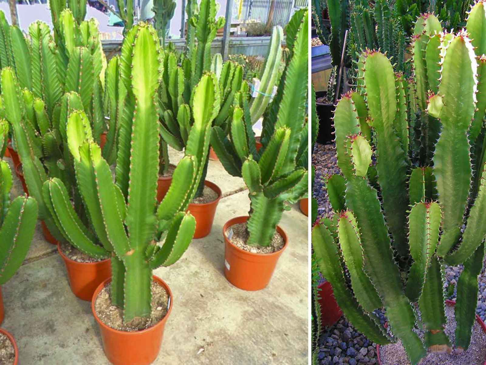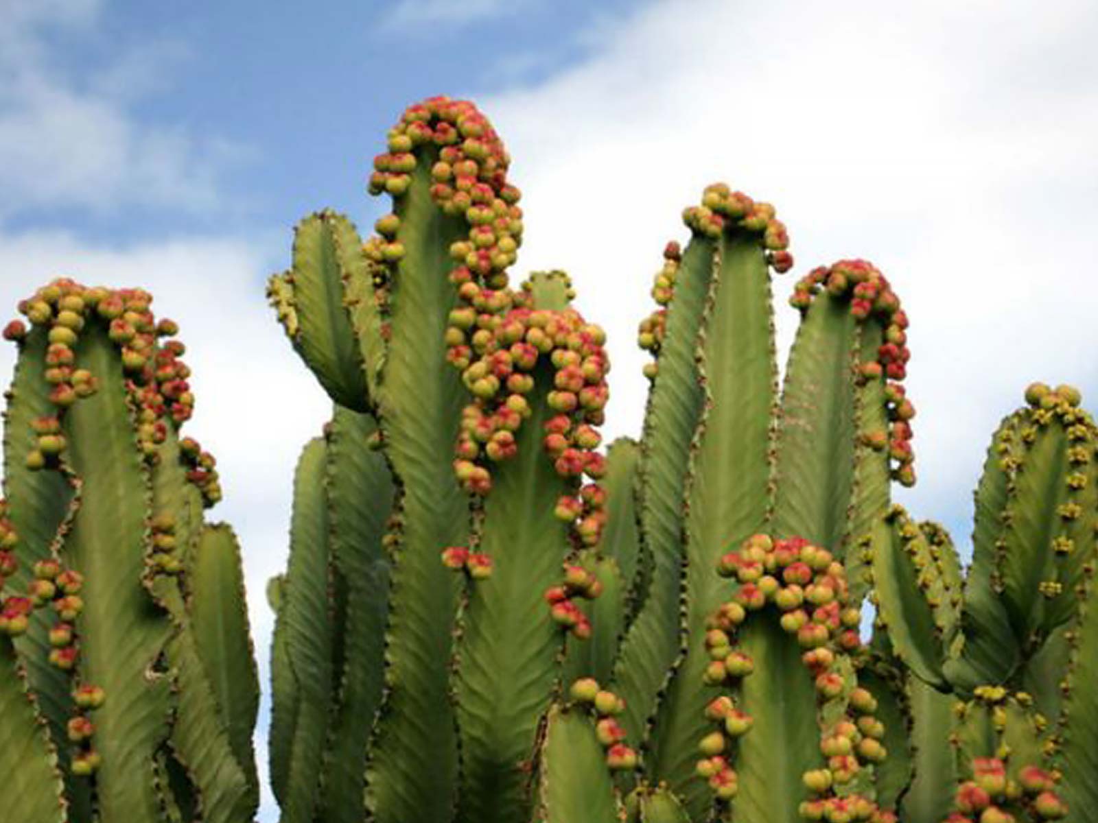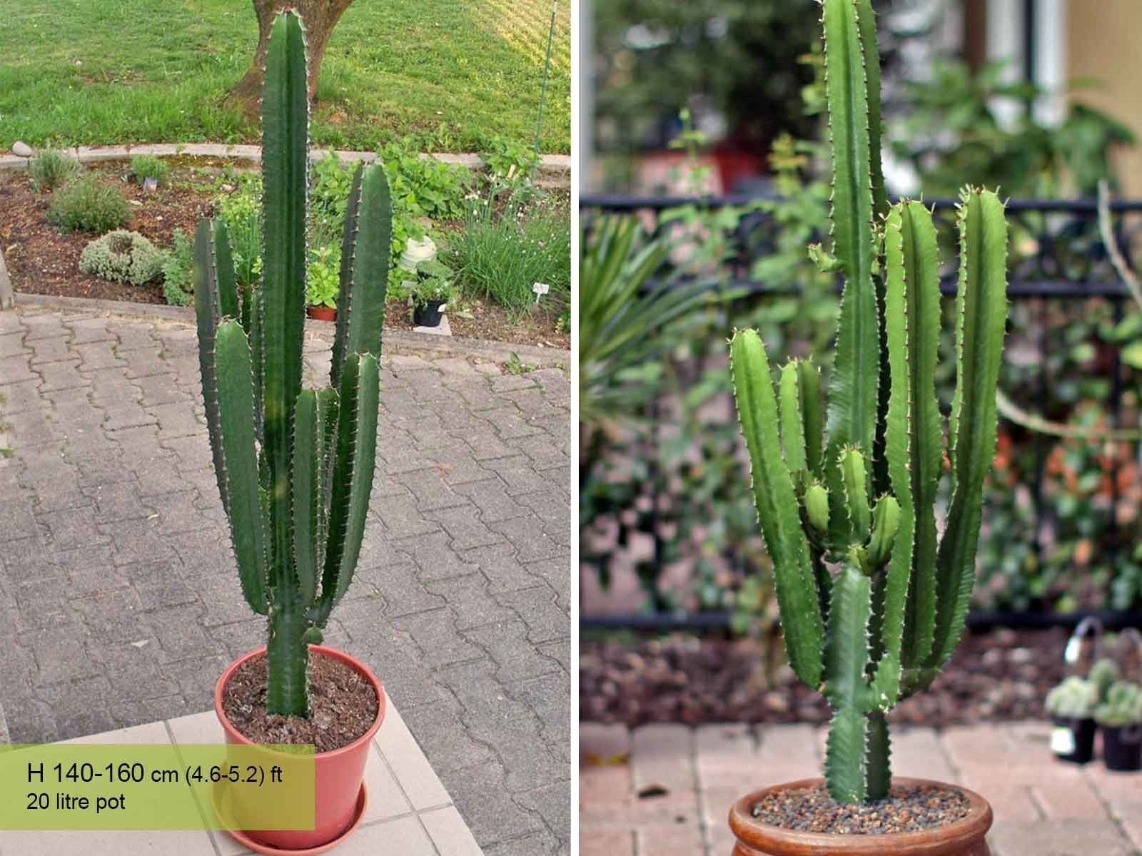 The Euphorbia Abyssinica, commonly called the Desert Candle, is a succulent with an erect habit and trunk without leaves or branches. It is made of thorny segments, arranged at different angles. This is a medium grower, suited to all gardens. It will grow easily in pots and likes full sun.