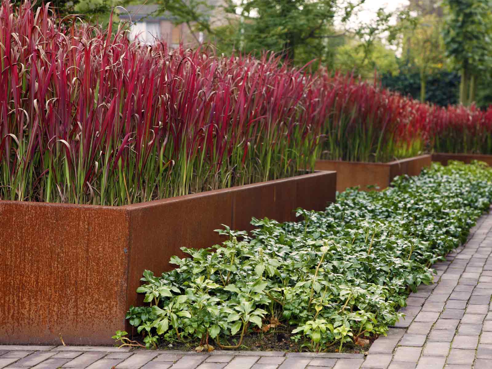 A visually striking grass – the blood red tips of its green leaves become brighter as summertime rolls on.