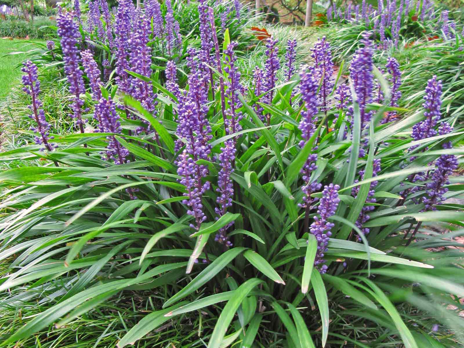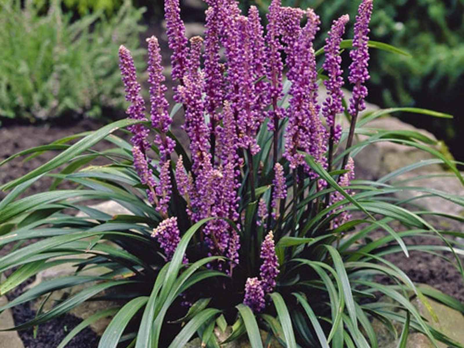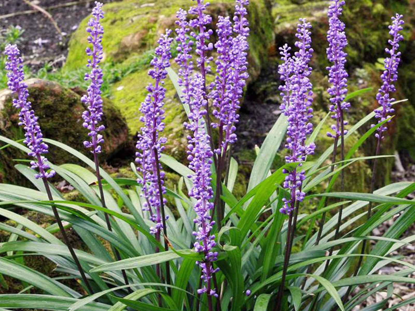 Originally from Asia, the Big Blue Lilyturf has become popular around the world for its leaves that hold their colour all-year-round and for its sumptuous purple flowers, which appear in autumn. These purple petals are sometimes followed by clusters of black berries. Big Blue Lilyturf is resilient against heat and humidity, but less hardy against the cold than other ornamental grasses we sell.