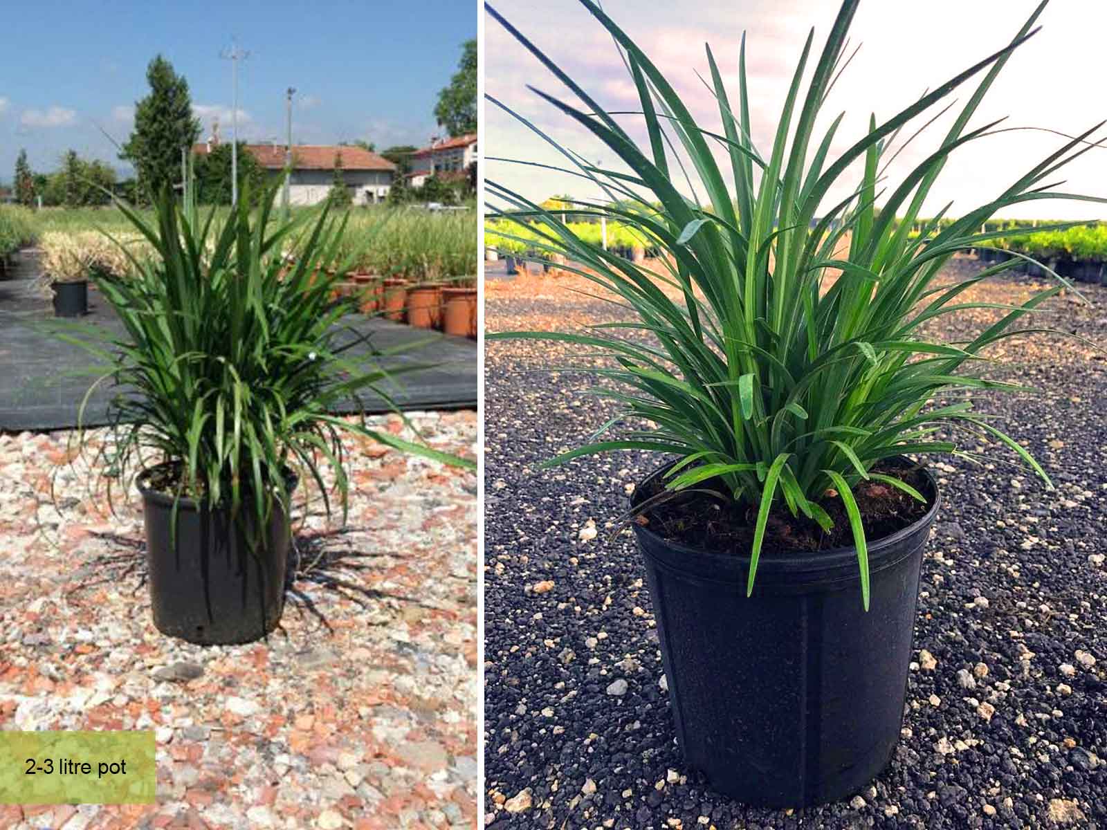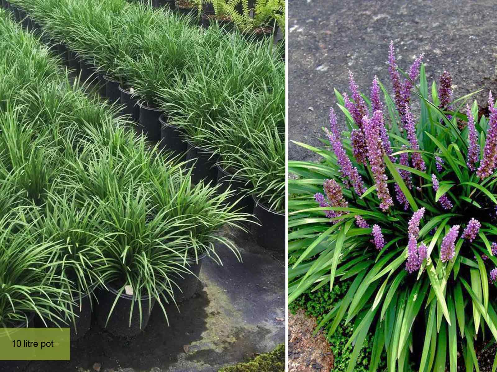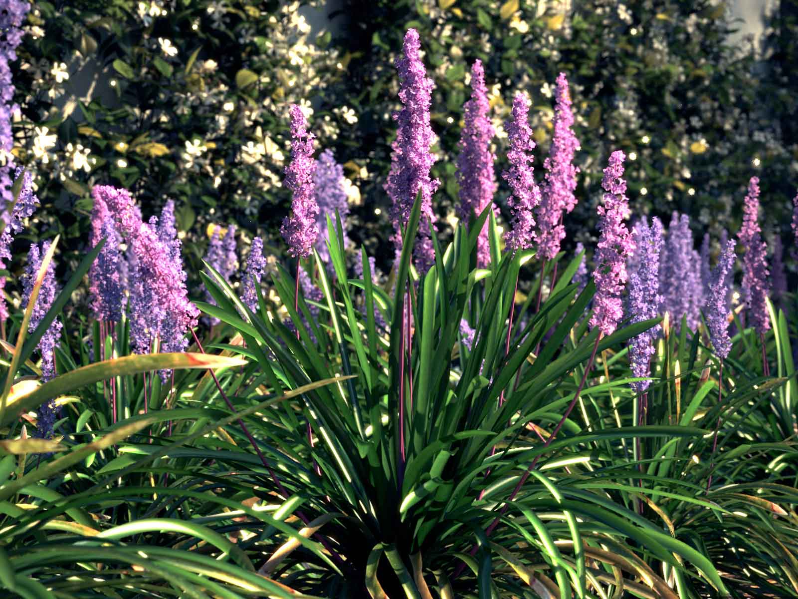 Originally from Asia, the Big Blue Lilyturf has become popular around the world for its leaves that hold their colour all-year-round and for its sumptuous purple flowers, which appear in autumn. These purple petals are sometimes followed by clusters of black berries. Big Blue Lilyturf is resilient against heat and humidity, but less hardy against the cold than other ornamental grasses we sell.