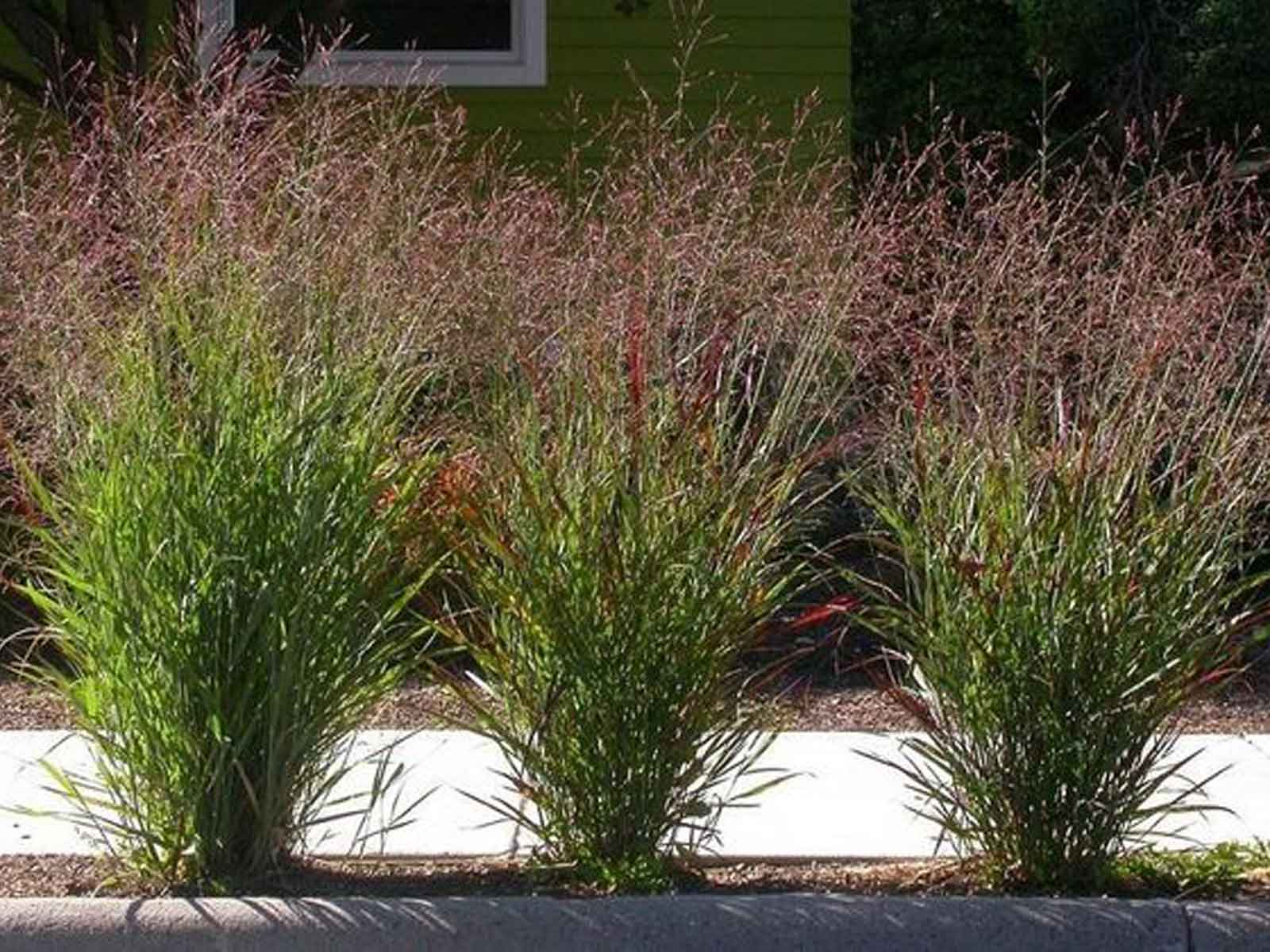 A tall grass with weeping, palm-like leaves that grow in tight clumps. It also produces red feathery flowers.