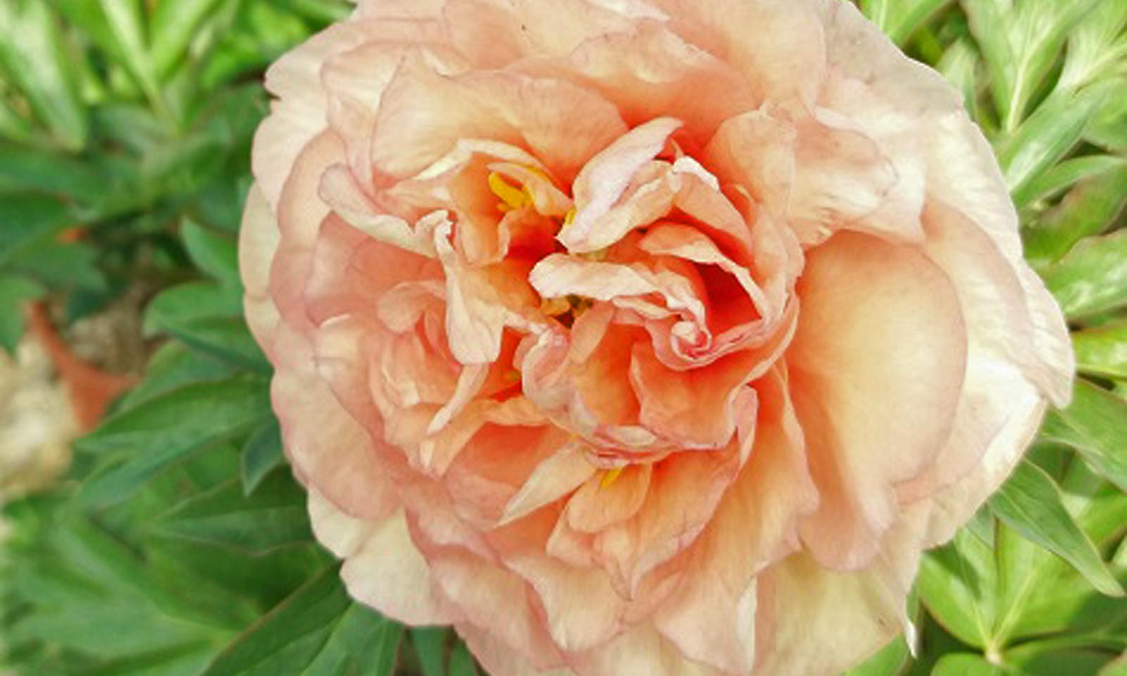 A clump-forming herbaceous perennial to around 75cm high, with strong stems and divided green leaves. Large, scented, semi-double flowers are produced in early summer, with soft apricot petals flushed with pink.