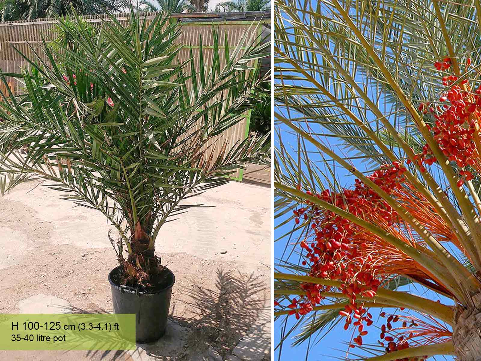 In a garden, the Date Palm serves not only as a source of delicious dates but also as an ornamental focal point, adding a tropical and exotic touch to the landscape. With its tall, slender trunk topped by a crown of gracefully arching fronds, the date palm exudes elegance and beauty.