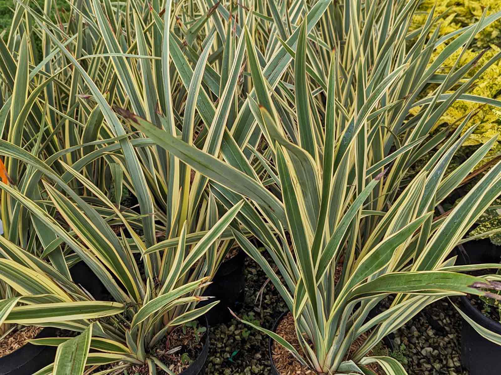 They grow in any well drained soil, in sun or partial shade and can look particularly effective when grown in containers. These plants are all drought resistant and are best planted on a slope or mound in heavy soil conditions. Avoid planting too deeply, which can result in the crowns rotting. To keep the plants looking at their best, cut off old leaves at their base in Spring and remove any shoots that are reverting to an unwanted colour. Although rarely grown for their flowers, these can be striking and useful in large flower arrangements along with the large seed heads and the foliage.