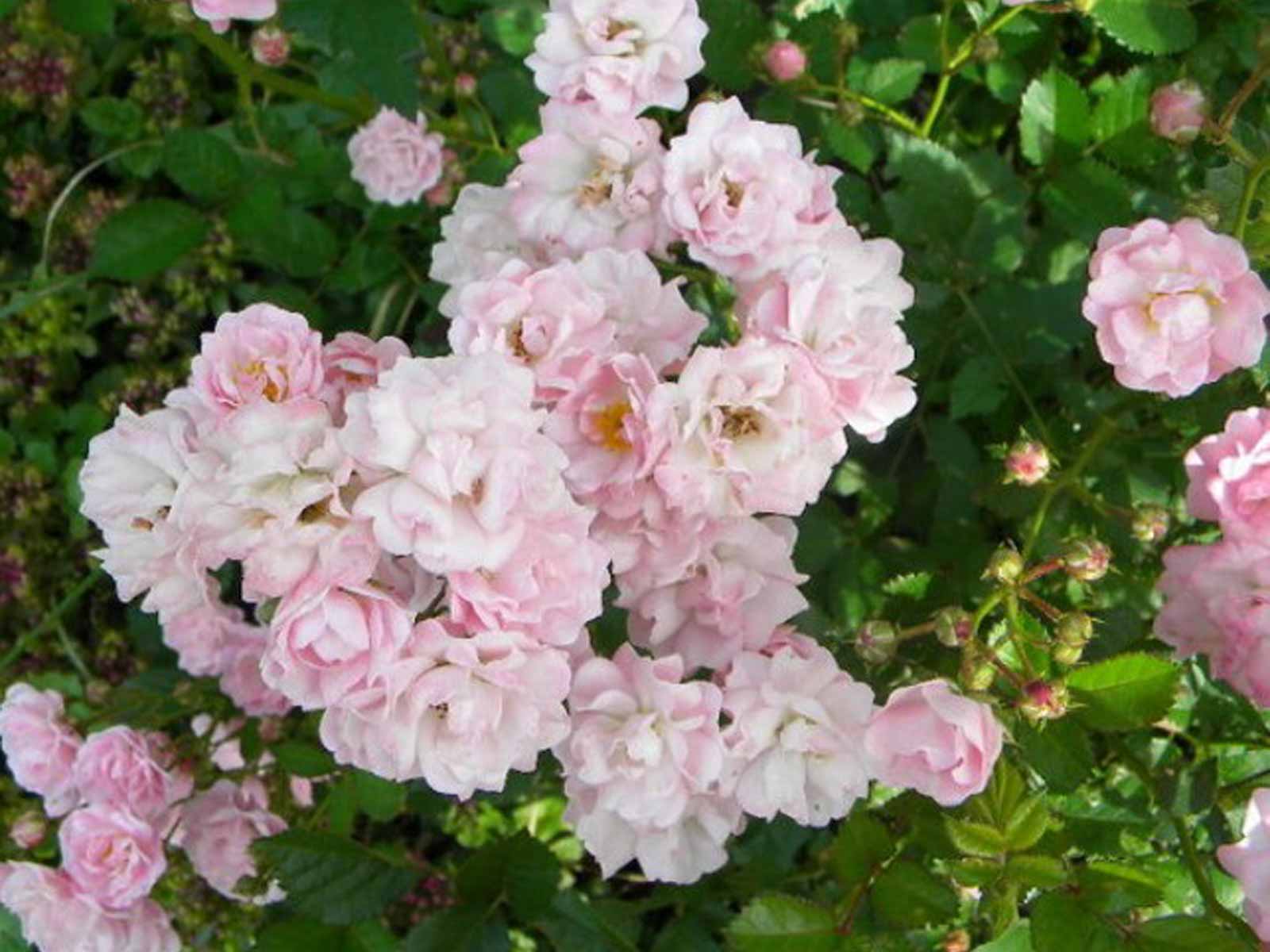 The Pink Double Knock Out Rose is very hardy and resilient, especially against heat and drought. It displays clusters of pale-pink blooms that perk up any landscape. As it expands across open space, it puts down bendy light-green stems, leaves and roots, but never so much as to over shadow its generously sized flowers. Our Pink Double Knock Out Roses come delivered as potted shrubs.