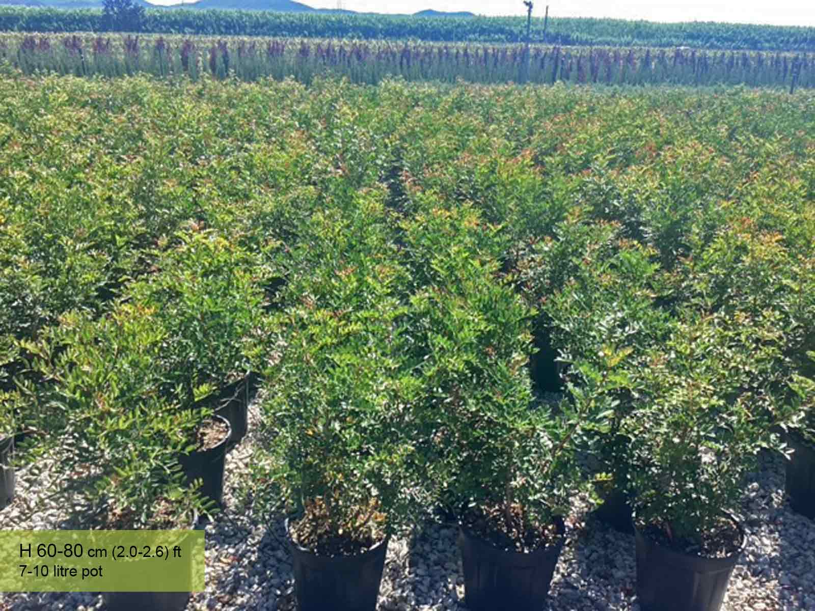 Naturally drought-tolerant and resilient, it thrives in warm, sunny locations and is perfectly suited to coastal and dry gardens.Reaching around 2.5–4 metres in height, Pistacia lentiscus can be grown as a compact shrub or trained into a small tree, making it ideal for hedging, screening, or as a striking standalone feature.