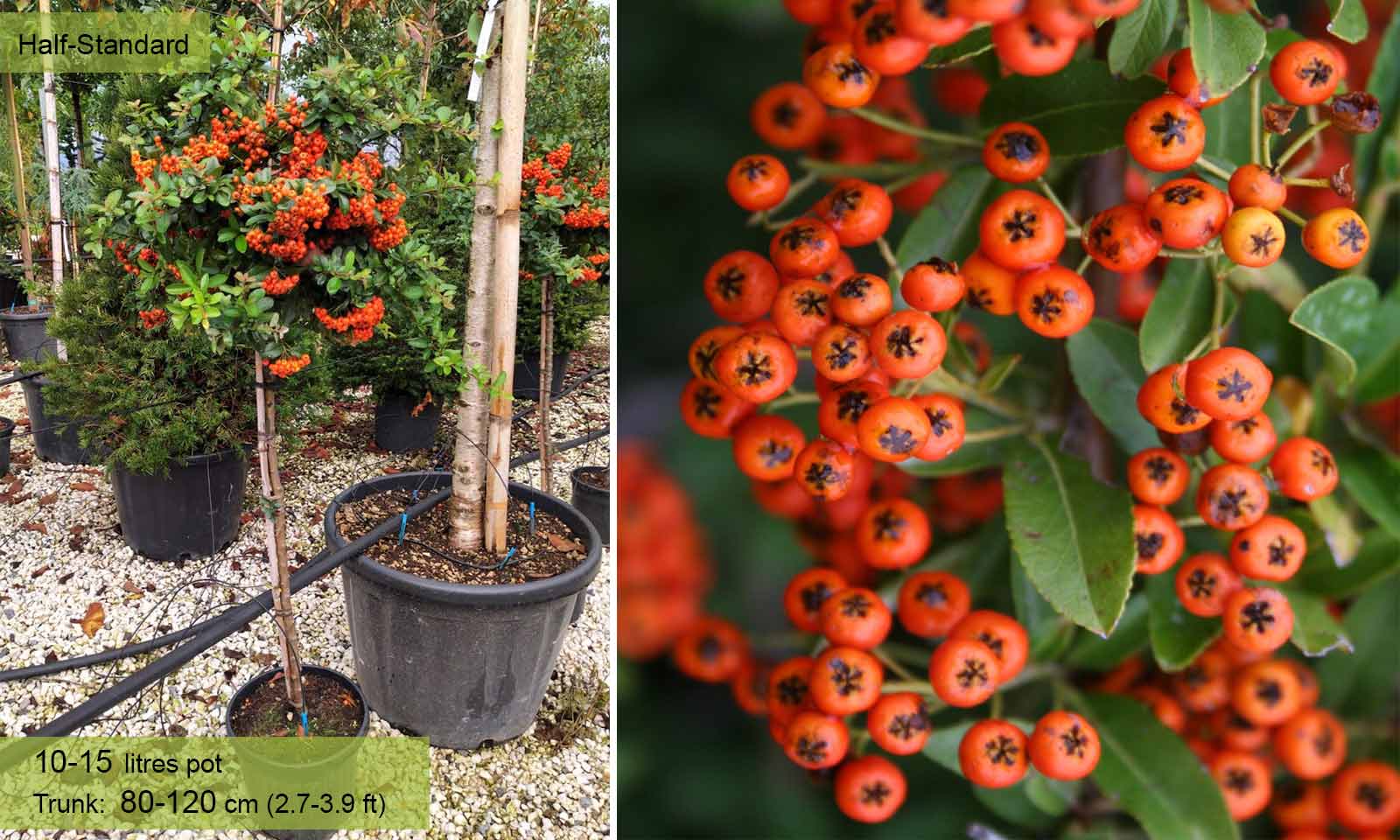 Fire-thorn plants produce berries of different colours, with the Navajo Firethorn bearing bright orange fruits. The abundance of berries, as well as their lack of appeal to birds and wildlife, mean you can enjoy their colour throughout autumn and deep into winter. As the name implies, Navajo Firethorn also have small thorns on their stems and branches, which makes them a good choice for security screens to keep out unwanted pests.