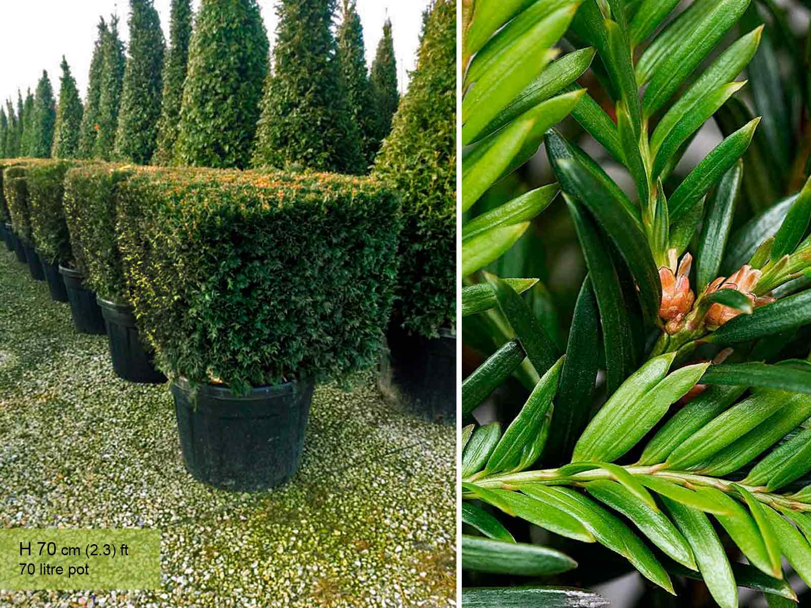 Withstands being covered by old trees. Used a lot for hedges because it tolerates severe, repeated pruning and it is also for this reason that this plant is used for creating geometric shapes and Giant Garden Bonsai. No regular pruning is required but trimming and shaping throughout the spring and summer months is advisable. The hardy rating is (H7) making this plant perfect all year throughout the UK. Fruit can grow in the Autumn time but it is advisable not to eat anything due to high levels of toxicity associated with this plant.