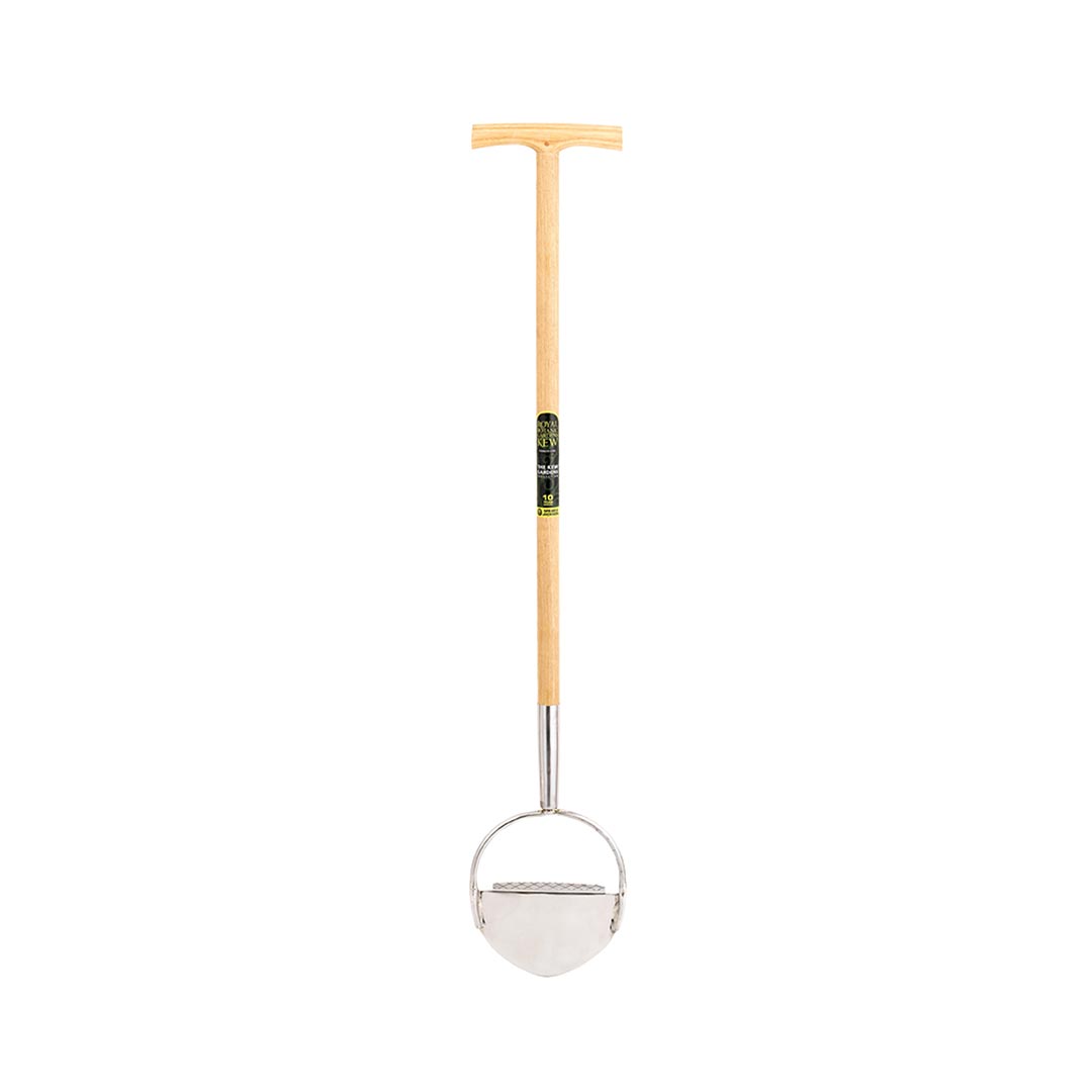 The mirror polished head of this edging knife slips easily through the soil, is resistant to rust and easy to clean. An extra wide T shaped handle and treads offer an improved grip and increased comfort.