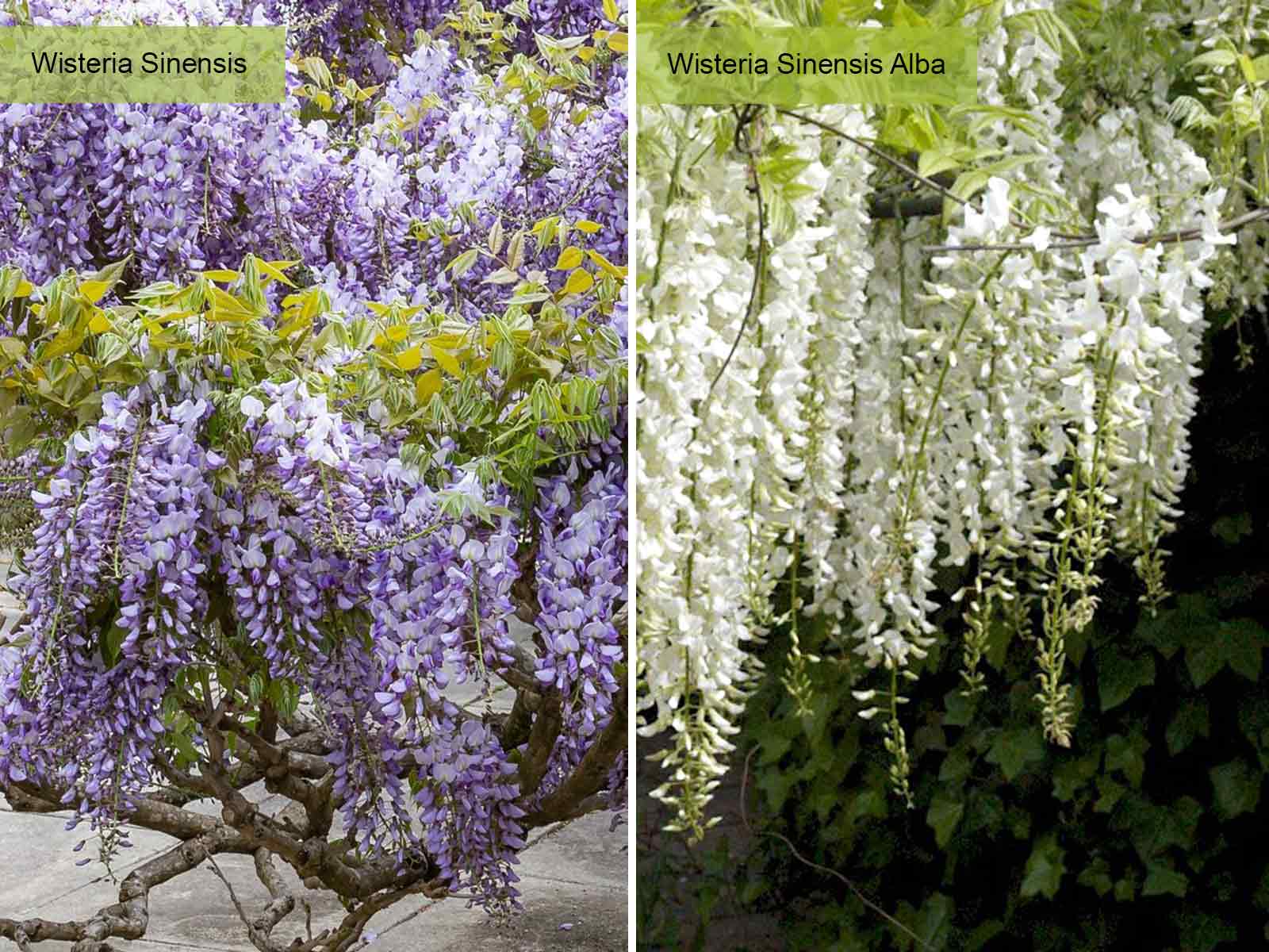 Wisteria Sinensis, Chinese Wisteria, is a much-loved beautiful climber from the Far East renowned for amazing beautiful cascades of gloriously scented racemes of lavender or white flowers in spring and early summer arising from bare stems as leaves do not appear until blossoming is over. Flowering is followed by pale green divided leaves which turn yellow in the autumn.