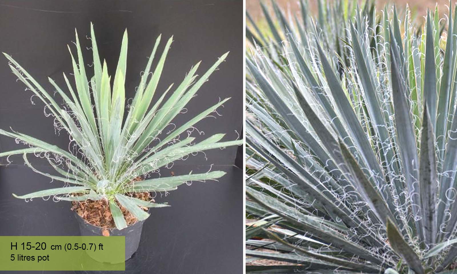 Also known as Adams needle, Yucca filamentosa is a multi-suckering palm with a tall flower stem. These stems produce beautiful clusters of cream flowers that bloom in the springtime and are sweetly fragrant. Perfect as an architectural plant in the garden or as an ornamental indoors, Yucca filamentosa is fully hardy at H5 and thrives in the temperate British climate, needing only sheltering in extreme weather conditions. Though all Yuccas appreciate a good amount of sun and well drained soil, they are fairly low maintenance and as such need fairly little watering. The plant is prone to potential pests and diseases. No maintenance is required.