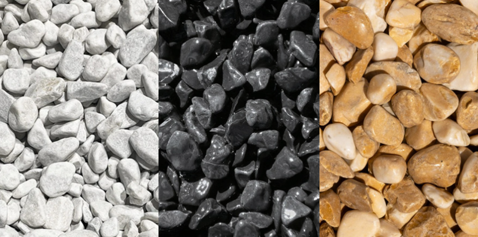 - White Carrara Pebbles – clean, modern, and reflective